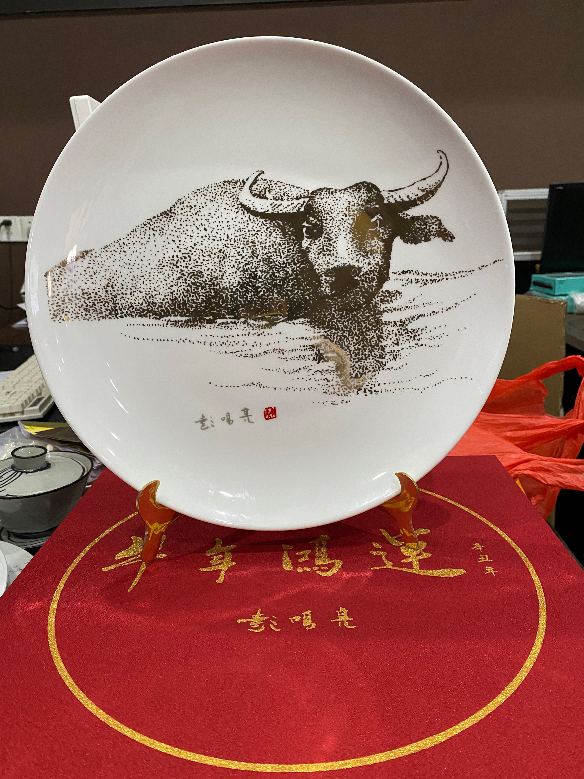牛年描金陶瓷紀念盤案例